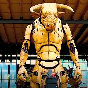 An estimated 600 000 people chased a gigantic robotic spider and minotaur around the streets of toulouse in a four day street theater spectacle.